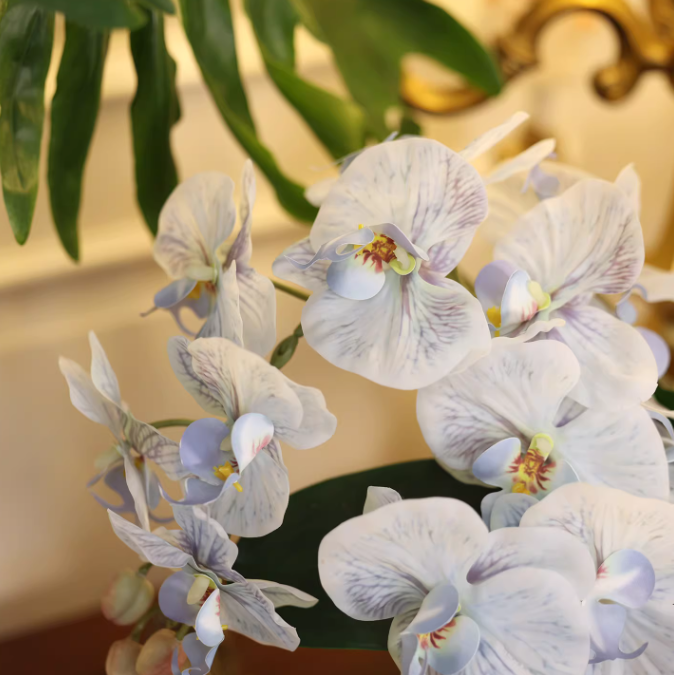 White Orchid Elegance – Creative Luxe Faux Floral Glass Vase Decor